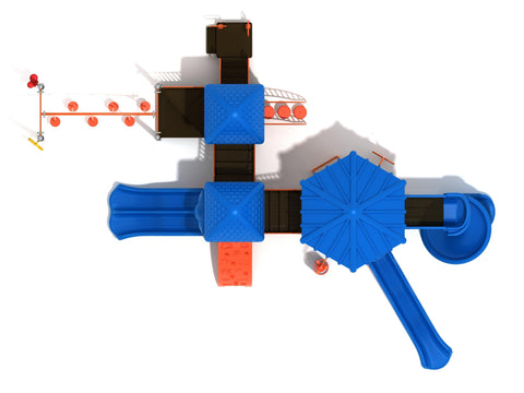 Elbert's play structure contains a plethora of amazing features that will inspire children's imaginations as they explore them. Tilted Lily Pad Bridge, as well as a Pebble Climber with Rails, are located on the ground level and are intended to challenge children's dexterity. A set of bongos, a ship's wheel, and a store panel are also included to encourage imaginative play. The Elbert play system's most notable feature, though, is its gigantic hexagon-shaped deck, which stands at a height of six feet. Several different climbers and ladders may be used to get to this section, including the Pod Climber, the Snake Climber, the Vertical Ladder, as well as stairs that can be used to ascend from the bottom level of the play structure. A 6-foot deck on a play structure has several advantages, the most important of which is that it can accommodate several exciting slides in addition to providing youngsters with an amazing perspective. There are two very distinct forms of slides available to children: the straight Wave Slide and the curly Spiral Slide. Both will give hours of entertainment for children.