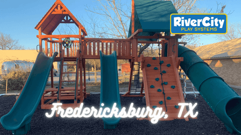 Are you looking for Playground One swing set in Fredericksburg, Texas? River City Play Systems in San Antonio, TX is an authorized dealer of Playground One swing sets for Central and South Texas and serves Fredericksburg, TX.