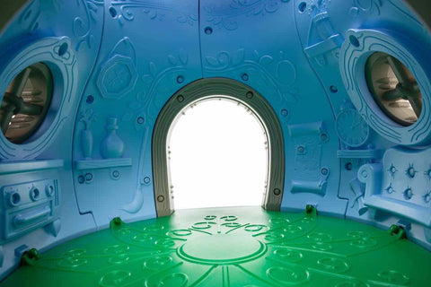 Children can explore textures, sounds, and colors through features like Ferah the Firefly with bright beads, Carl the Caterpillar with colorful rings, and Bertie the Bluebird near the window. The Mailbox with Chimes encourages fine motor skills, while the rock climber and leaf slide promote physical activity. Designed for both indoor and outdoor use, Happy Hollow ensures inclusive play with ground-level access and nature-inspired elements.