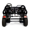 Control is simple and secure with coaster braking, a hand brake, and a parking brake. The patented transmission includes reverse for easy maneuvering. The pivoting front keeps four wheels planted on uneven ground, while sealed ball bearings, positive steering joints, and heavy-duty connections deliver smooth, precise handling. Heavy wall steel tubing and durable powder coating are built to last. Optional rumble seats let younger kids up to 40 lbs each join the ride.