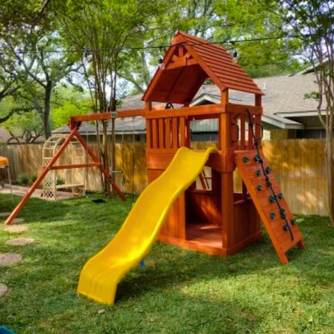 Shop medium wooden playsets, perfect for South Central Texas backyards. These playsets offer high-quality wood construction, fun features like slides and swings, and a more compact size—ideal for family-friendly outdoor fun.