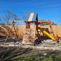 This used Swing Set is available exclusively for local customers in San Antonio and South Central Texas. This high-quality swing set comes with free installation, offering a premium play experience for your backyard. This unit includes FREE local delivery, installation, and a gallon of stain!