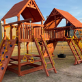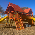 The Turbo Deluxe Dual Powerhouse with Wood Roofs delivers double the excitement for families throughout San Antonio and South Texas. This high-quality wooden swing set turns any backyard into a full-featured playground, offering endless ways to climb, swing, and play together. With its bold design and durable construction, it’s a playset built to inspire imagination and keep the fun going year after year.