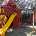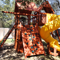 The Supreme Fort with Spiral Slide, Playhouse, & Wood Roofs brings unmatched adventure and charm to your backyard. Perfect for families in San Antonio and South Texas, this premium wooden swing set combines imaginative play with timeless craftsmanship. From climbing and swinging to relaxing in the playhouse, it creates a backyard playground built for fun, creativity, and lasting memories.