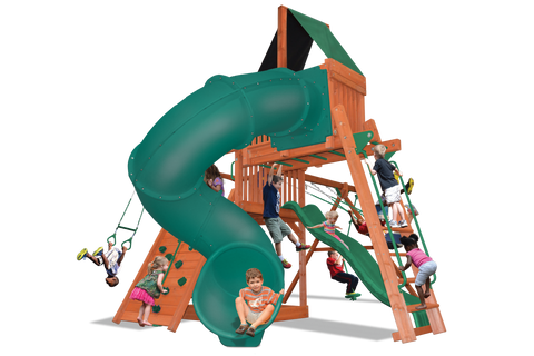 Accept no substitutes! The Deluxe Fort Combo 5 has everything you need for you to have your own tree house. From the huge deck area to the challenging rock wall, you will not find a sturdier more attractive play set. We begin with all cedar construction and then add a variety of features, like monkey bars, a Sky Loft, and an Extreme Corkscrew Spiral Slide. What better way to introduce exercise into your child’s life while they are just having fun!