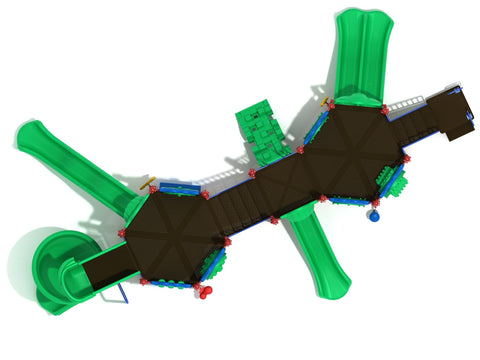 Brindlewood Beach is an excellent play system for big or crowded play spaces because of its versatility. It is divided into two big hexagonal regions, each of which supports a pair of slides. The bottom one, which stands at a height of four feet, accommodates a side-by-side Double Slide, which is ideal for letting children to compete against one another in a game of speed. A variety of activities are also available, including a Ball Maze Panel for youngsters to play by themselves, a Plinko Panel for them to play with others, and a Chime Panel for them to utilize as a musical outlet while on the playground. The higher hexagon-shaped portion is 6-feet in height, and this astounding height is home to the thrilling Wave Slide and Spiral Slide attractions. Aside from that, it has three activities: a Wheel of Activity Panel, a Tic Tac Toe Panel, and a Percussion Panel. On the opposite side, there are three panels: one for solitary play, one for cooperative play, and one for musical exploration. The same is true on the other side.