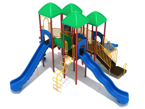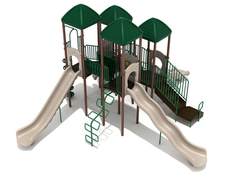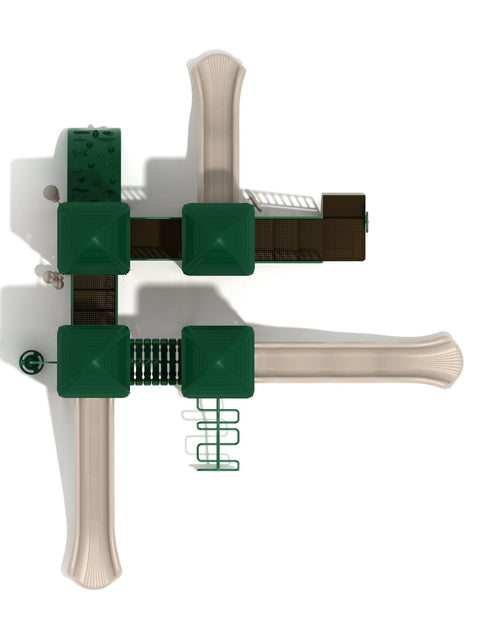 Constructed with durable, powder-coated steel and roto-molded plastic components, Brook's Towers is built to withstand heavy use and various weather conditions. Its expansive footprint makes it an excellent choice for schools, parks, and community centers in San Antonio and surrounding Texas areas.