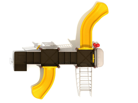 The Missoula play system is a straightforward design that is as at home on its own as it is as a streamlined addition to a pre-existing playground. It features a sloping design with two sets of stairwells that lead up to larger and more exciting slides at the top. There are two types of slides. The first is a three-foot Right Turn Slide that gives a basic delight that children of all ages can appreciate. The Right Turn Slide, which measures five feet in length and faces in the other direction, is found at the top of the second flight of steps, although it is substantially larger. Metal climbers go directly up to the openings of these two slides, making it simple for children to climb back up and ride them again. Both slides may be accessed by a Vertical Ladder and an Inverted Arch Ladder, with the smaller slide being reachable via a Vertical Ladder and the bigger slide being accessible via an Inverted Arch Ladder.
