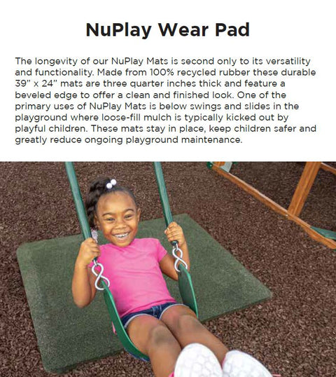 Keep your playground safer and cleaner with the NuPlay Forest Green Playground Wear Mat. Designed specifically for high-traffic zones under swings, slides, and climbers, this durable mat helps maintain mulch coverage while adding a layer of impact protection right where it’s needed most.