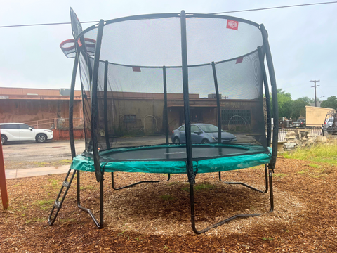 This used BERG Trampoline is available exclusively for local customers in San Antonio and South Central Texas. This high-quality trampoline comes with a free ladder, free basketball TwinHoop, and free local installation, offering a premium play experience for your backyard. This unit includes FREE local delivery & installation!